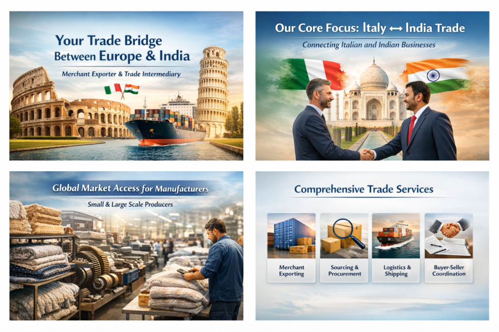 To become a trusted international trade partner for companies seeking long-term growth across global markets, starting with the India–Italy corridor.